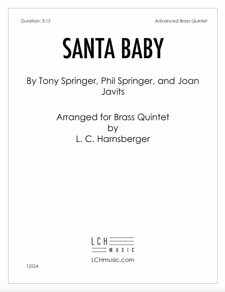 This arrangement for brass quintet takes a distinctive approach by giving the song a uniquely classical sensibility inspired by J. S. Bach, Pachelbel, and even Luciano Berio. Perfectly crafted for the ensemble, this version of Santa Baby will preserve the holiday spirit and bring a new level of sophistication your audience will appreciate.